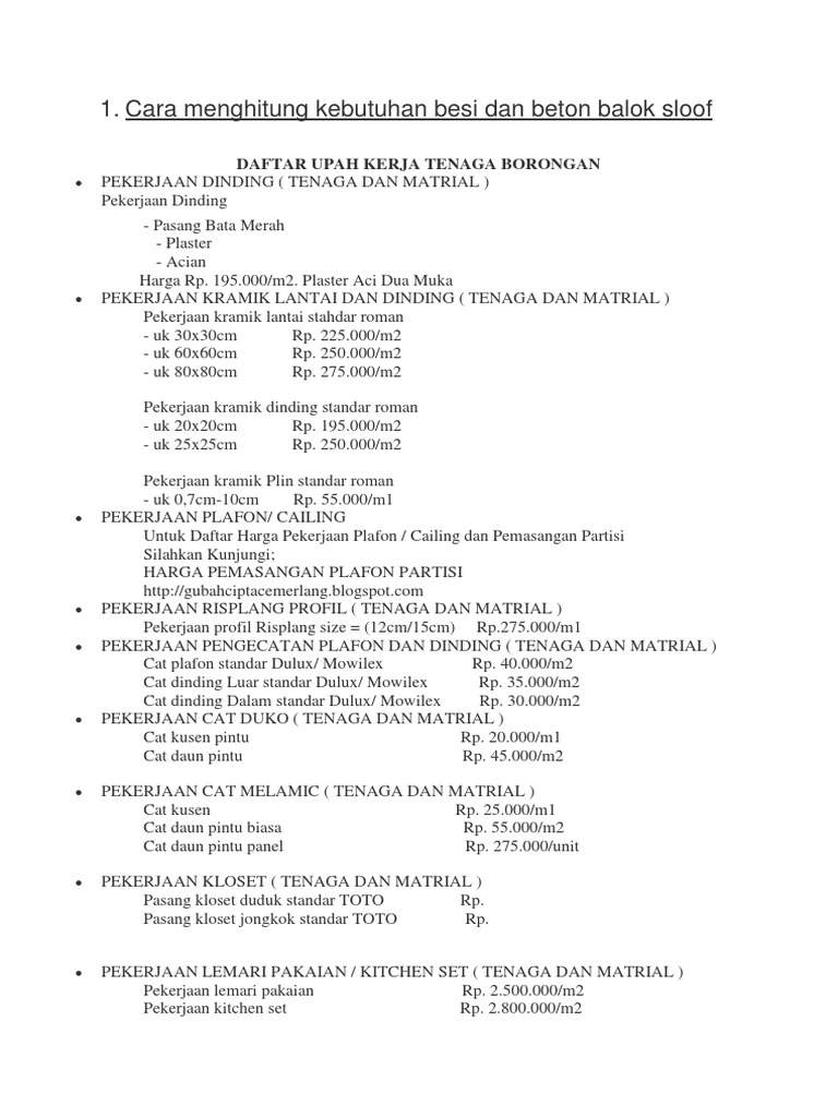 Cara Menghitung Kebutuhan Besi Dan Beton Balok Sloof Pdf