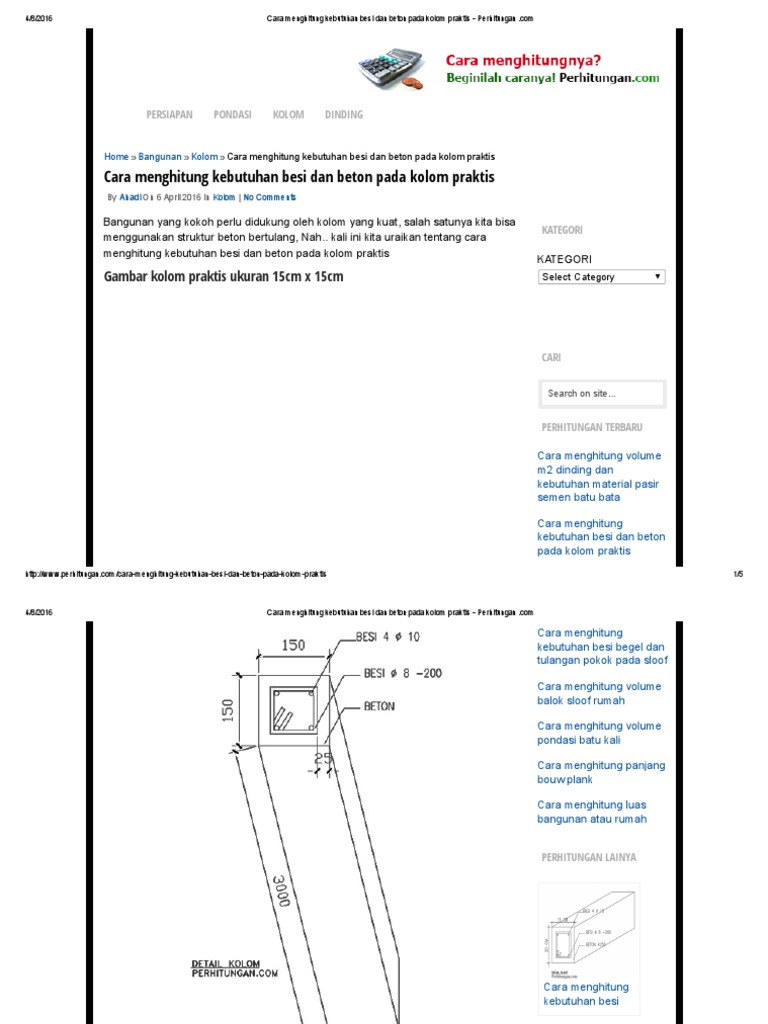 Cara Menghitung Kebutuhan Besi Dan Beton Pada Kolom Praktis Perhitungan Pdf